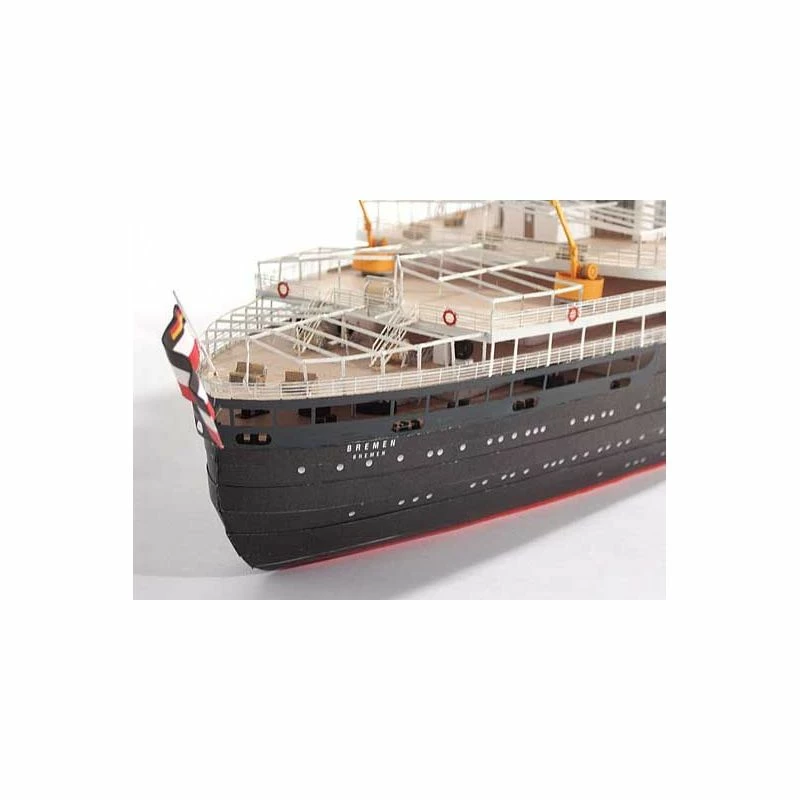 Le modèle du paquebot Bremen IV est un favori pour de nombreux constructeurs de modèles. L’histoire intrigante derrière ce beau navire à la fois en termes d’histoire et de design se reflète de manière adéquate dans la conception exceptionnelle de cet énorme modèle de plus d’un mètre de long.