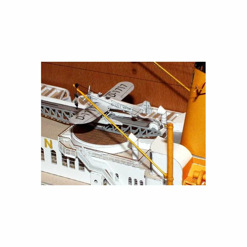 Ce modèle est définitivement quelque chose de spécial. Il comprend l’intérieur du pont, la salle à manger de la 1ère classe et le fumoir. Il comprend également une catapulte et un avion pour la livraison du courrier.