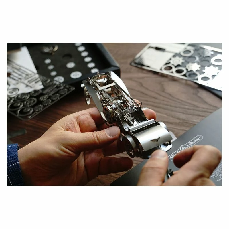 La série métal est entièrement consacrée à la maquette métal dans toute sa splendeur. La brillance froide et le style raffiné des réalisations leur confèrent un charme intemporel, idéal pour offrir ou pour parfaire la décoration d’intérieur. Ces constructions à monter sont une combinaison parfaite de classiques sophistiqués et d’esthétique minimaliste. Le plus fascinant reste toutefois les petits détails en mouvement, c’est-à-dire qui se déplacent au rythme d’une synchronisation soigneusement élaborée.