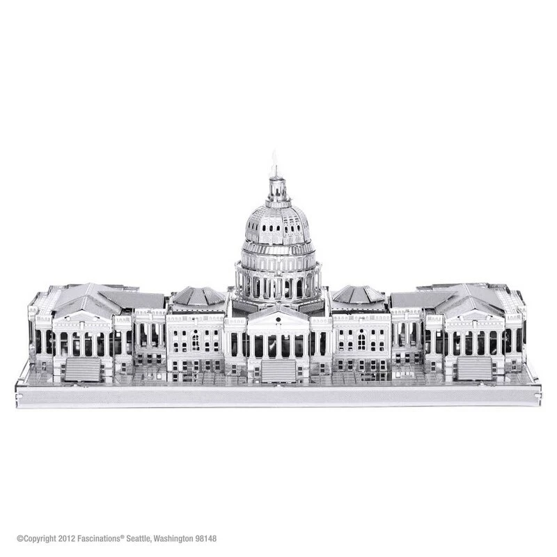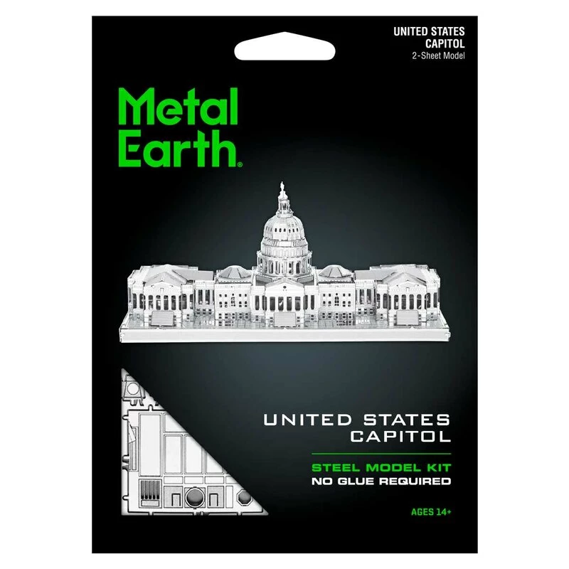 MetalEarth Architecture: US CAPITOL 10.7x4x5cm, maquette 3D en métal avec 2 feuilles, sur carte 12x17cm, 14+