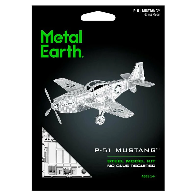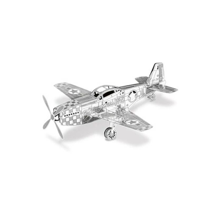 MetalEarth Aviation: MUSTANG P-51 8.92×9.41×2.97cm, maquette 3D en métal avec 1 feuille, sur carte 12x17cm, 14+