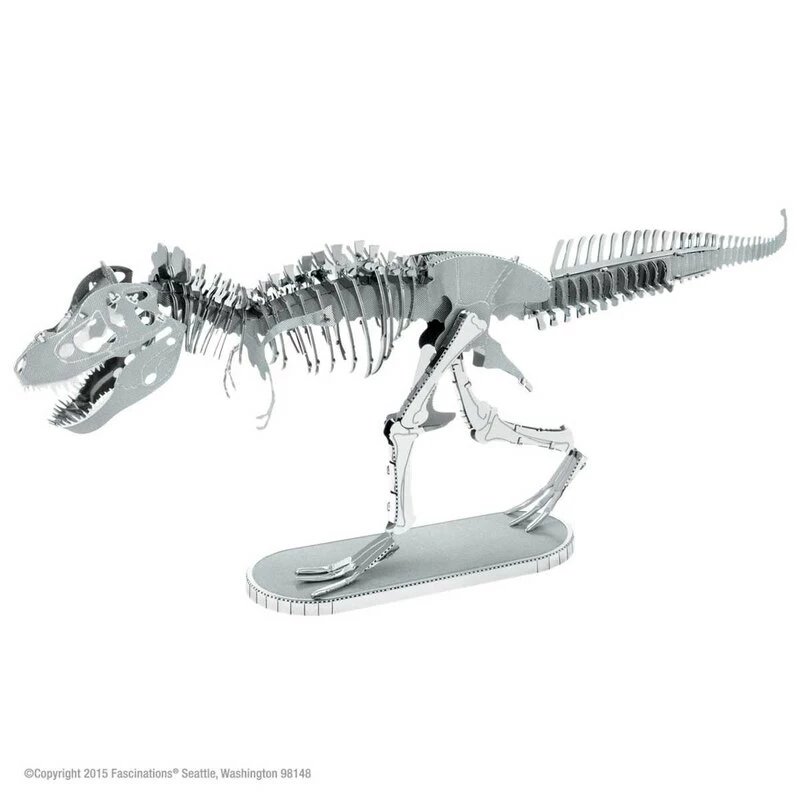 MetalEarth Dinosaures: TYRANNOSAURE REX SQUELETTE, maquette 3D en métal avec 2 feuilles, sur carte 12x17cm, 14+