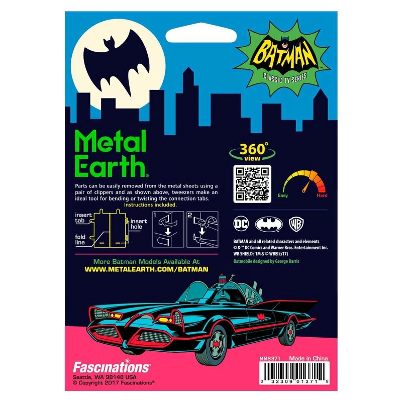 MetalEarth: BATMAN/CLASSIC TV BATMOBILE 8.89×3.3×2.54cm, maquette 3D en métal avec 2 feuilles, sur carte 12x17cm, 14+