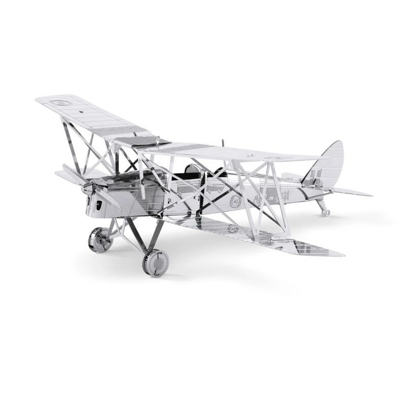 MetalEarth Aviation: DH82 TIGER MOTH 9,2×7,3×2,5cm, maquette 3D en métal avec 1 feuille, sur carte 12x17cm, 14+