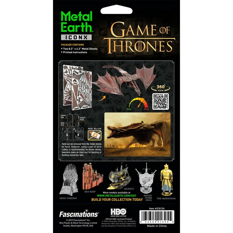 MetalEarth: ICONX – GAME OF THRONES / DROGON 21x19x4cm, maquette 3D en métal avec 2 feuilles multicolorées, sur carte, 14+