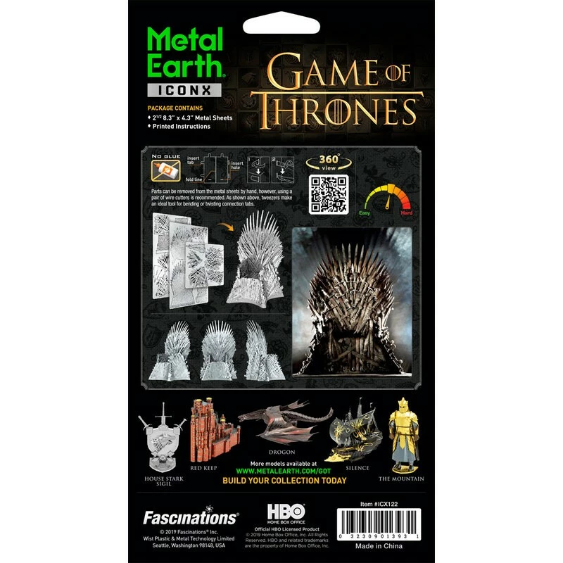 MetalEarth: ICONX – GAME OF THRONES / IRON THRONE 6.9x11x6.6cm, maquette 3D en métal avec 2 feuilles, sur carte, 14+