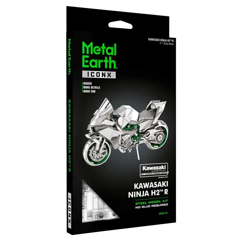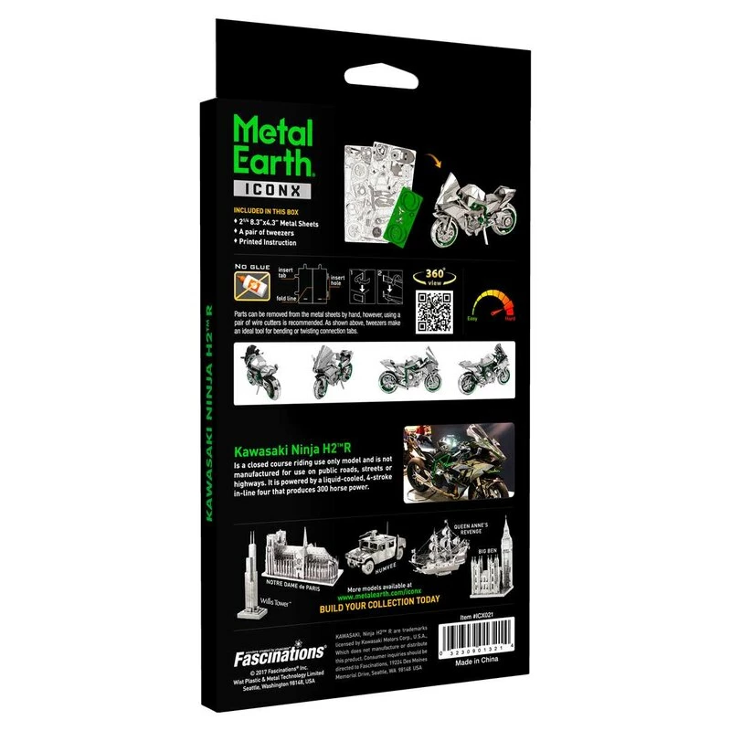MetalEarth: ICONX – KAWASAKI NINJA 12.19×5.08×7.62cm, maquette 3D en métal avec 2 feuilles, en boîte 13,5x22x2cm, 14+