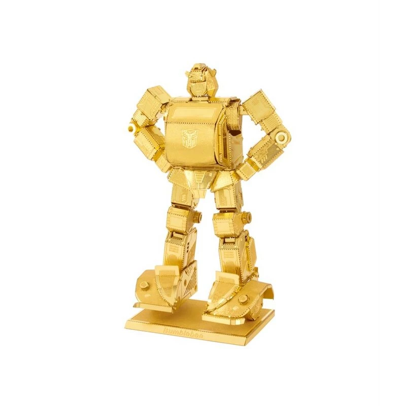 MetalEarth: TRANSFORMERS/BUMBLEBEE en Or 4.5×3.1×8.7cm, maquette 3D en métal avec 2 feuilles, sur carte 12x17cm, 14+