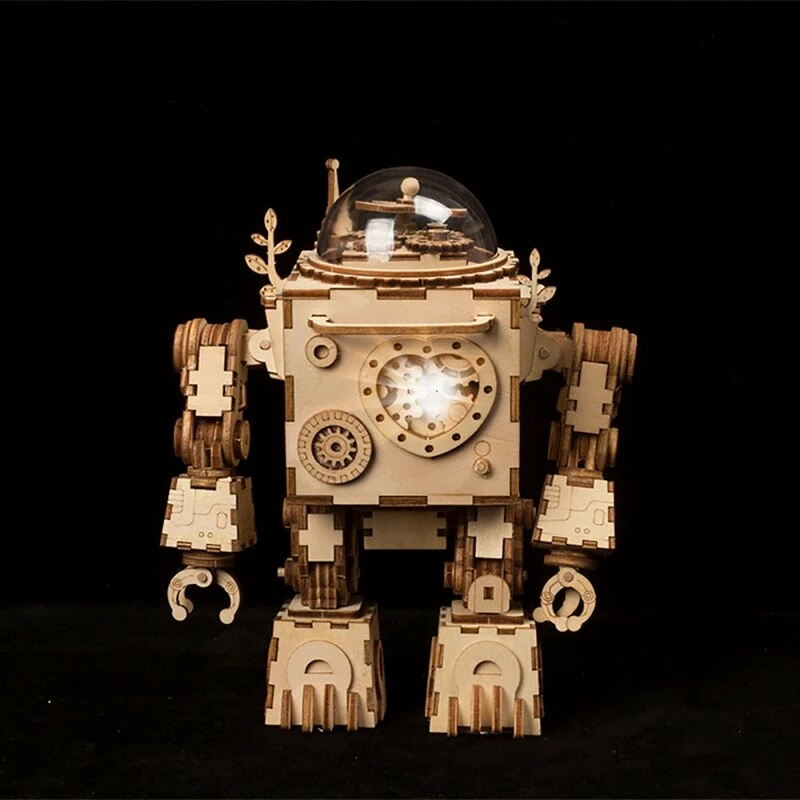 Robotime est un fabricant de puzzles en 3D sous forme de maquettes en carton flexible ou de maquettes en bois, et parfois la combinaison des deux matières. Il propose une large gamme de produits de qualité représentant un objet rétro, un accessoire mécanique ou encore une maison singulière et détaillée. En assemblant les nombreuses pièces de la maquette Robotime, vous obtiendrez une jolie boîte à musique, un dirigeable, un dinosaure, des maquettes mécanisées, une maison marchande etc. Toutes les pièces sont soigneusement prédécoupées au laser dans du bois ou du carton de grande qualité. Elles sont également sérigraphiées avec des couleurs vives ou métalliques.