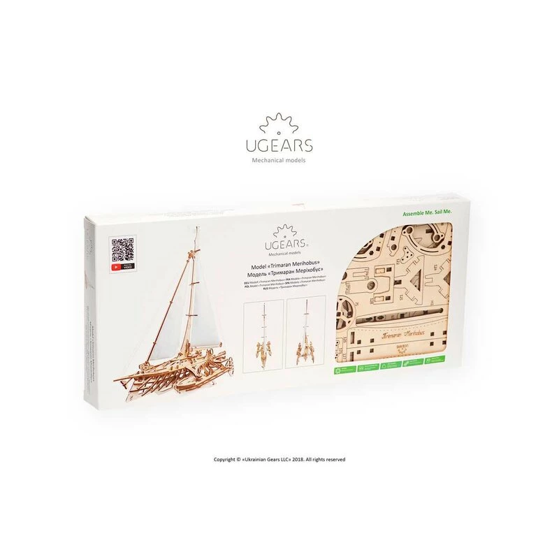 Comme tous les autres modèles Ugears, le Trimaran Mérihobus est livré avec des instructions pas à pas, en couleur, vraiment faciles à suivre (en 11 langues: ukrainien, anglais, allemand, français, polonais, espagnol, russe, turc, italien, chinois et coréen) et ne nécessite ni colle ni outils spéciaux pour être entièrement assemblé.