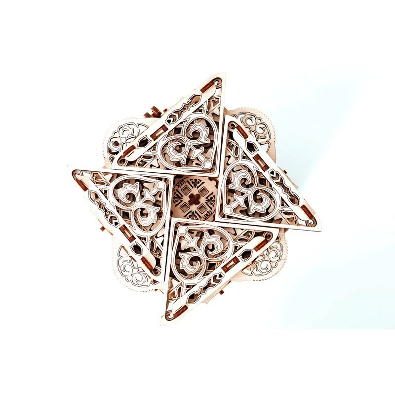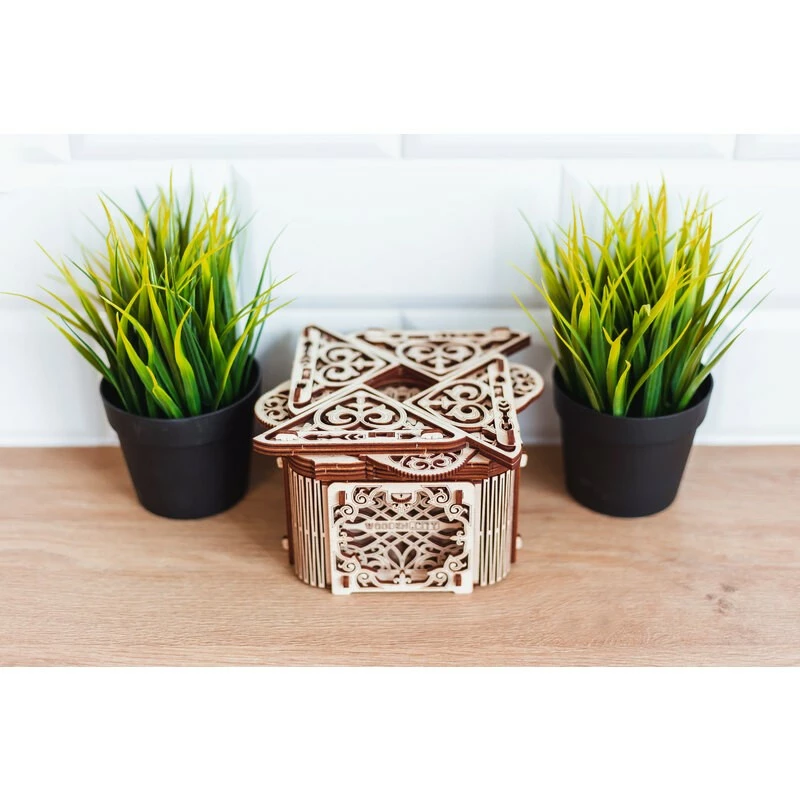 La Mystery Box de Wooden City est la reproduction d’une boîte ancienne tirée de la légende du Cinquième élément. Il s’agit en réalité d’une boîte à secret à déverrouiller. Elle peut également faire office de boîte à bijoux ou tout simplement d’élément décoratif. Le couvercle s’ouvre avec une clé qui relie des triangles. Pour ouvrir cette boîte, il faut faire preuve d’un grand sens de l’observation et utiliser une logique mécanique.