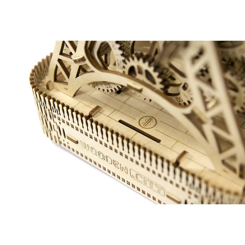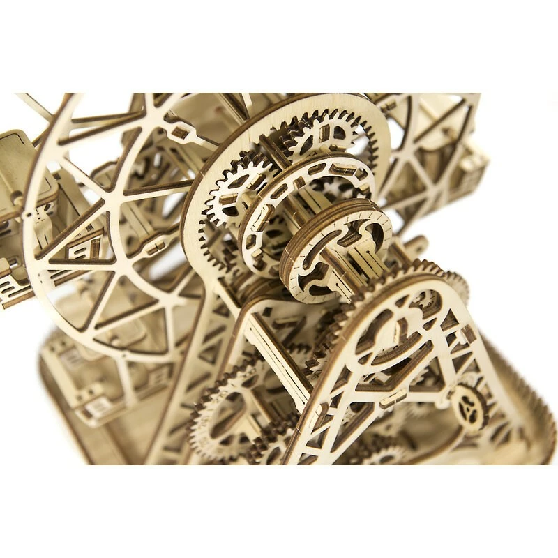 L’horloge magique Wooden City possède deux cadrans, un pour les heures et un pour les minutes. Elle est ornée de jolies gravures fantaisie et possède des engrenages en rotation qui soutiennent le rythme de la pendule. Cette horloge permet d’observer l’ensemble du mécanisme d’horlogerie le plus basique. Le mouvement de l’horloge dure une demi-heure.